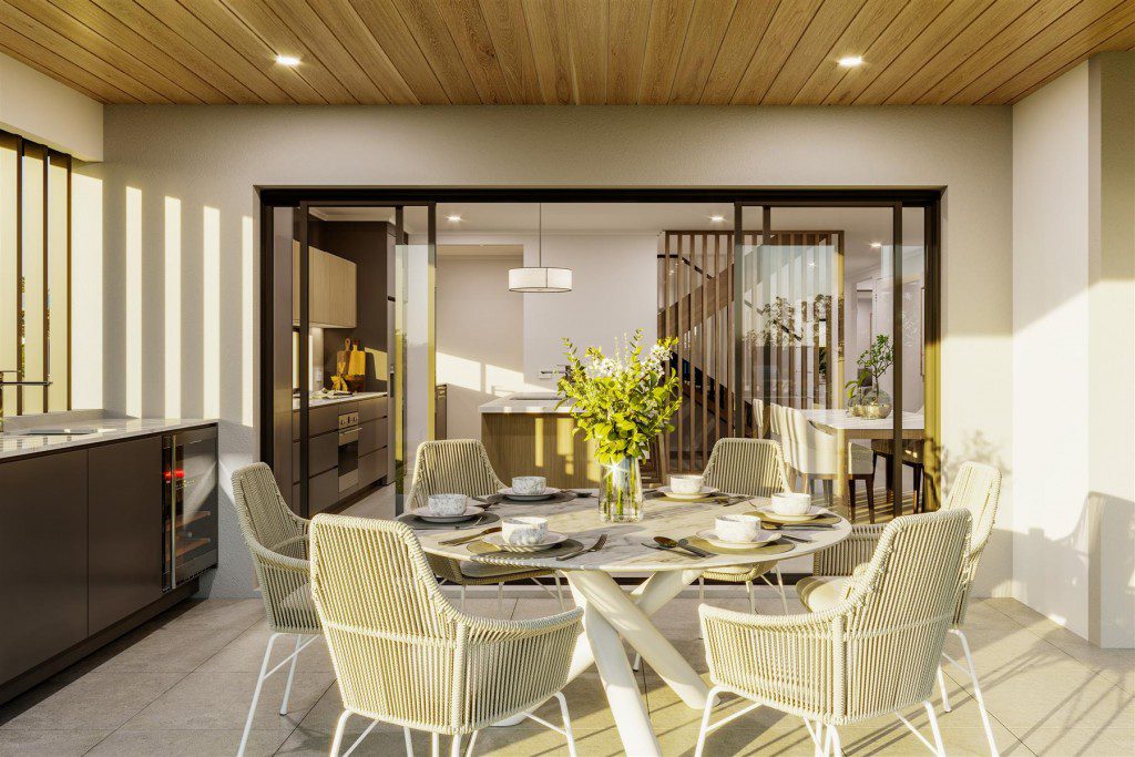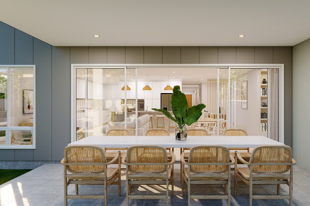 If the idea of another kitchen seems too daunting for your culinary skills or entertaining habits, an optimally designed alfresco off your open living space can be the perfect compromise. The floorplan of a home like the Mandalay has been designed so the outdoor spaces effortlessly flow into the indoors. The use of an undercover dining area, and desert-style landscaping lets this outdoor area feel private and exclusive. Instead of a kitchen outdoors, the outdoor space connects via a window to the butler’s pantry. Seamlessly flowing from the living room to the alfresco, you can open up the space throughout the summers and entertain effortlessly thanks to an innovative floor plan. This arrangement is ideal if an outdoor kitchen could run the risk of going unused.